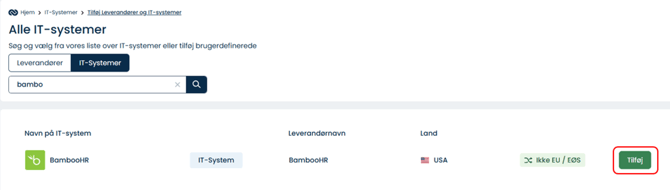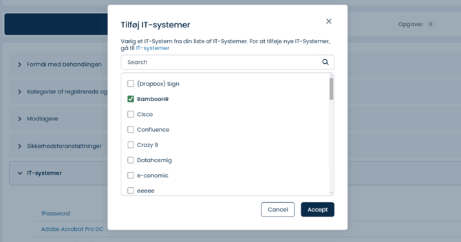 Her kan du vælge det IT-system, som I benytter til at behandle persondata.