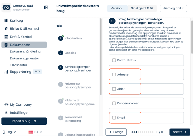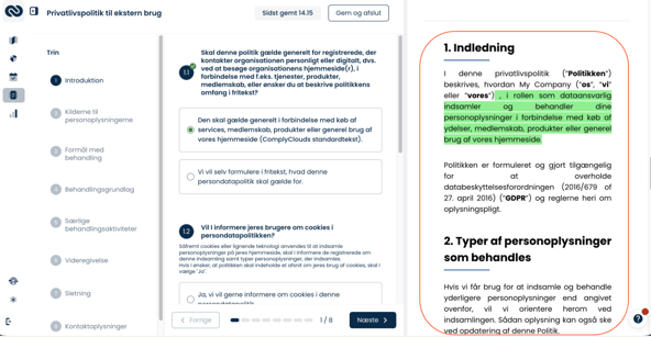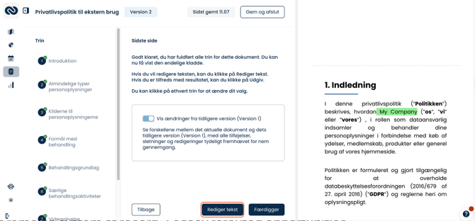 - Du kan redigere indholdet i dine GDPR dokumenter efter du har besvaret alle spørgsmål i et spørgeskema (Før var dette et statisk dokument)