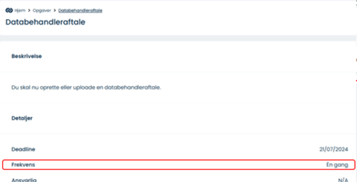 - Nogle opgaver kan ikke redigeres, hvis de er tildelt af ComplyCloud som en engangsopgave.