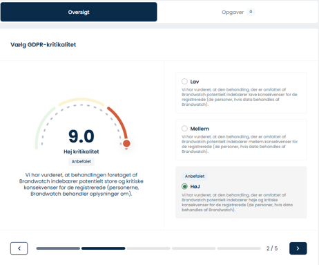 Tip: Du kan selv ændre kritikalitets-niveaet hvis du vurderer kritikaliteten til at være en anden end den, der er foreslået af ComlpyCloud.