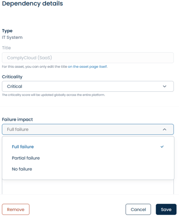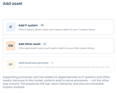 Any system or asset you have already mapped can now be selected as a dependency required to maintain the chosen business goal.