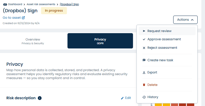 You can benefit from sending a risk assessment for review. Once approved, the risk assessment is saved as a new version under History.