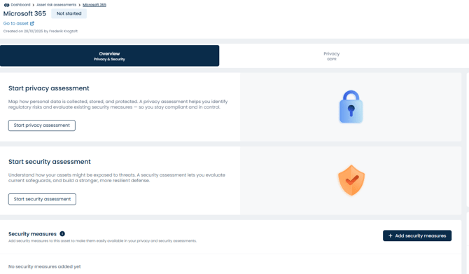 When you have added an IT system or a processing activity, you can choose whether to base your risk assessment on privacy or security.